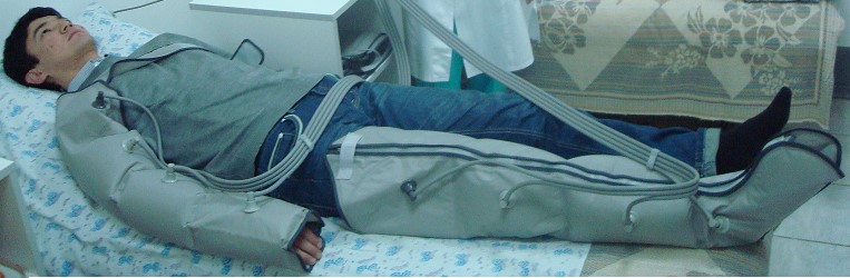Аппарат воздушно-компрессионного массажа «Doctor Life DL 2002 D»- воздействует на лимфатическую систему сжатым воздухом, подаваемым через ботфорты и манжеты. Этот метод представляет собой способ механического воздействия на подлежащие ткани, в результате которого происходит вытеснение из них излишков внеклеточной жидкости- лимфодренаж.