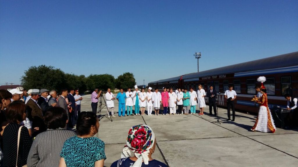 Елбасының тапсырмасы бойынша ҚТЖ ҰК Акционерлік қоғамы Қазақстан Республикасы Төтенше жағдайлар министрлігімен бірлесе отырып ел аралап жұмыс жасайтын медициналық пойыздар жобасын жүзеге асырды. Бұл теміржолшылар мен олардың жанұя мүшелеріне, шалғайдағы ауыл тұрғындарына жылжымалы көпбейінді мамандандырылған кеңес беру-диагностикалық көмекті көрсететін түбегейлі жаңа әлеуметтік жоба болып табылды. Биылғы жылы «Жәрдем» медициналық пойызы бекітілген кесте бойынша 11 маусым мен 5 шілде аралығында Атырау облысының Қүрманғазы, Исатай, Мақат және Қызылқоға аудандарының темір жол бекеттеріне тоқтап, бекеттер мен шалғай елді мекен тұрғындарына қолжетімді медициналық көмек көрсету жоспарланған болатын. Пойыздың медициналық бригадасында Астрахань, Павлодар, және Ақтөбе калаларының бірінші не жоғарғы санаттағы терапевт, невропатолог, окулист, лор, гинеколог, хирург, уролог, стоматолог дәрігерлері жұмыс жасауда. Пойыз компьютерлік спирометрлік жүйе, эхоэнцофалограф, видеогастрофиброскоп, карлиологиялық мониторлы диагностикалық жұктеме тестерді жүргізу жүйесі, велоэргометр, кардиограф және деректерді өңдеу компютерлік жүйесі жиынтығы, жапон, неміс фирмаларының ең соңғы рентген, стоматологиялық, лор және офтальмологиялық қондырғыларымен жабдықталған.